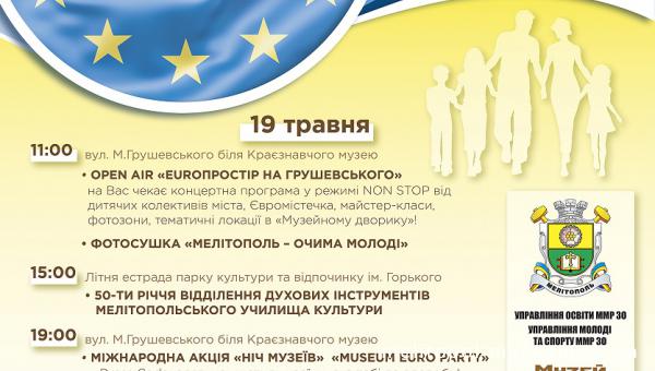 3 11.00 до 16.00 на Вас чекає концертна програма у режимі NON STOP від дитячих колективів міста, ви можете відвідати Евромістечка, долучитись до майстер-класів, для усіх працюватимуть фото зони та тематичні локації в «Музейному дворику»!