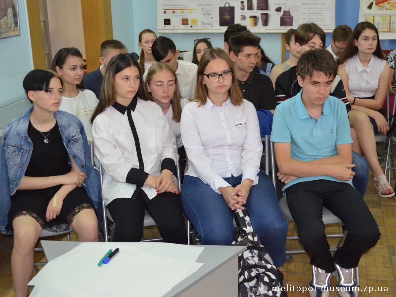23 травня до Мелітопольського міського краєзнавчого музею завітали учні 9-А класу СШ №25 на лекторій «Вулиця Героїв України», що приурочено до Дня Героїв, щорічному святу в Україні, встановленого на честь українських вояків — борців за волю України, передусім, лицарів Київської Русі, козаків Гетьманської Доби, опришків, українських січових стрільців та вояків Армії УНР, УПА та діячів ОУН.