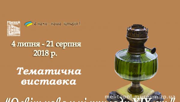 В Мелітопольському міському краєзнавчому музеї 4 липня 2018 р. відкриється тематична виставка «Освітлювальні прилади XIX ст.».