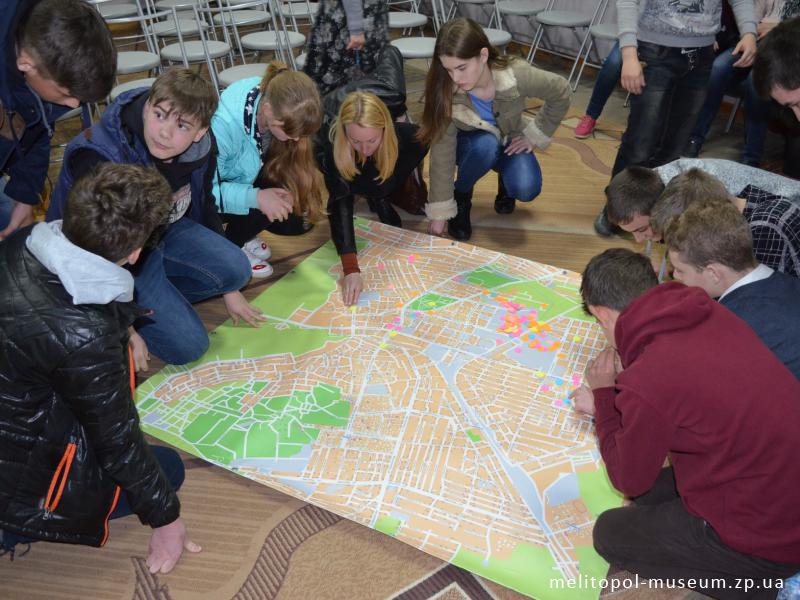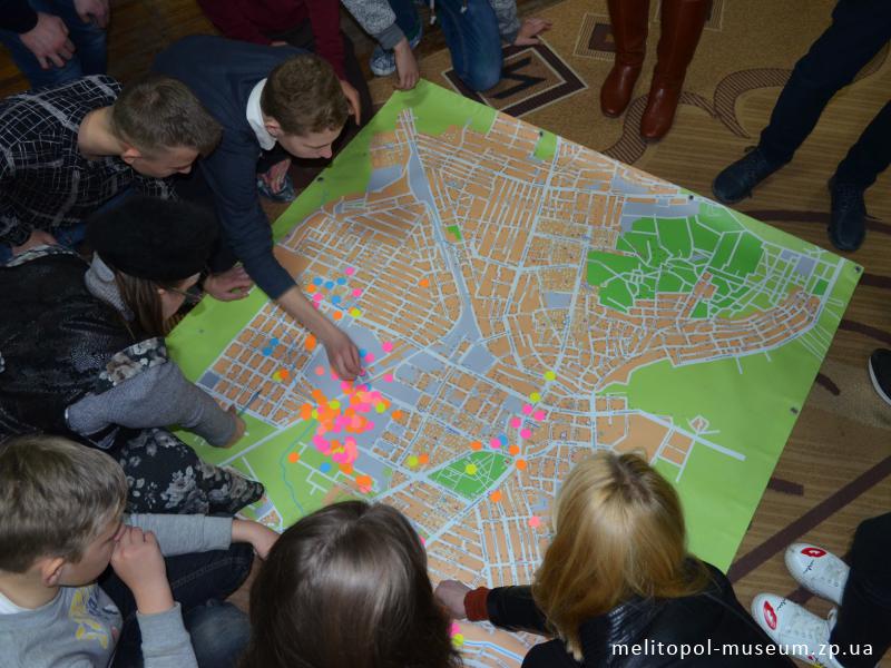 Враховуючи, що зустріч проходила в видатний та важливий день – Міжнародний день пам’яток історії та культури - присутнім було запропоновано скласти перелік визначних місць рідного міста та позначити їх на мапі Мелітополя.
