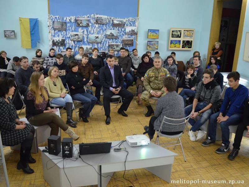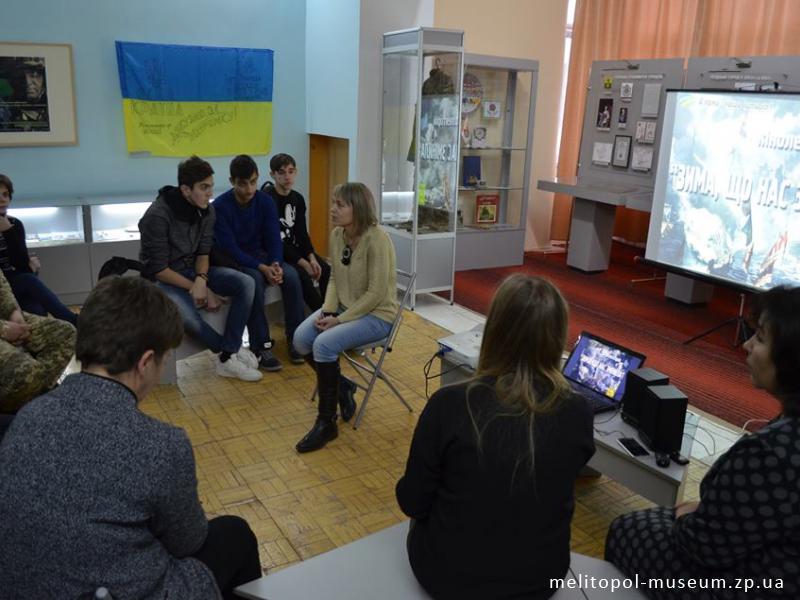 Після перегляду фільму у молоді була унікальна можливість поспілкуватися з мелітопольскими волонтерами: Світланою Алєксєєвою, Оленою Горяною, Іваном Колісниченко, Людмилою Шведюк, Мішрякова Наталя, Кушнаренко Олегом.