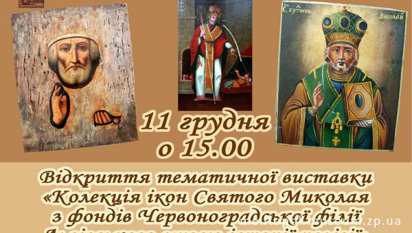 11 грудня 2019 року о 15.00 в Мелітопольському міському краєзнавчому музеї відбудеться відкриття тематичної виставки «Колекція ікон Святого Миколая з фондів Червоноградської філії Львівського музею історії релігії».