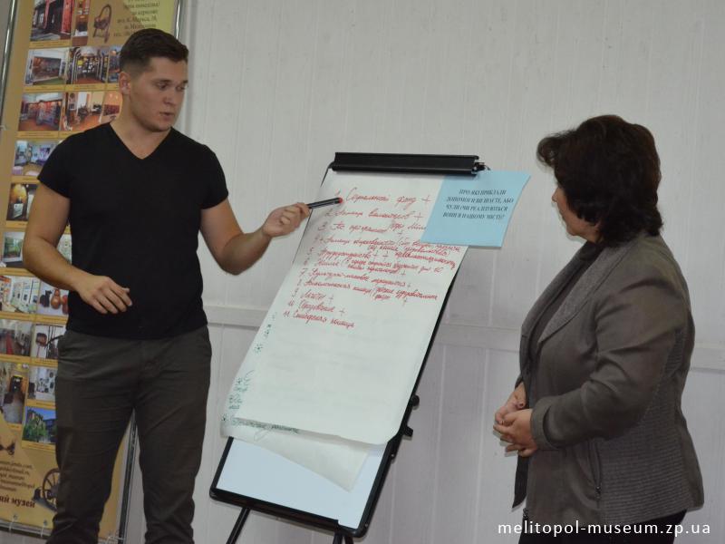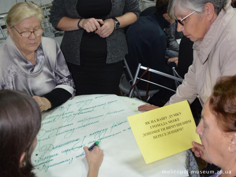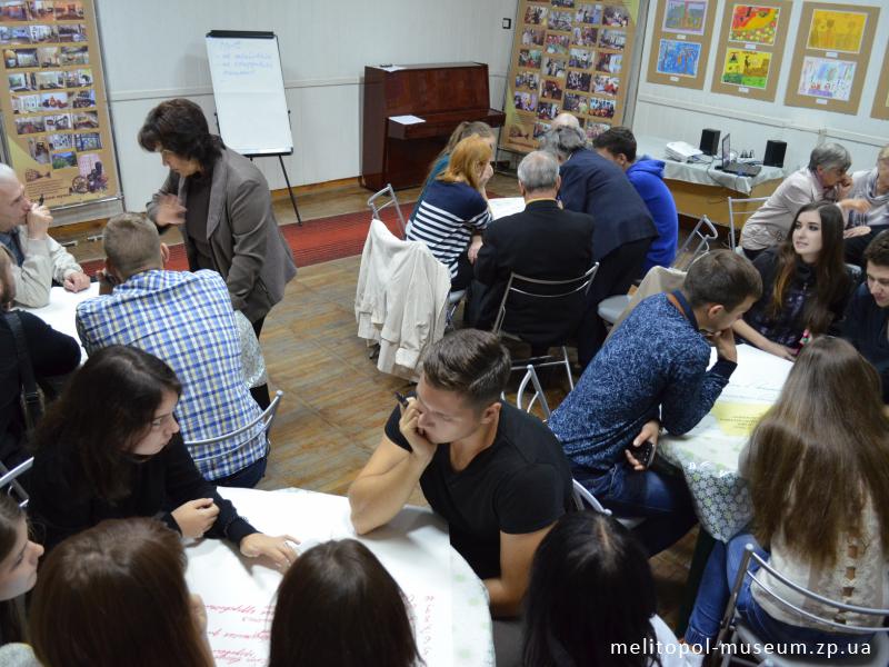 Присутнім було запропоновано п’ять проблемних питань, відповіді на які було знайдено у ході активної бесіди у невимушеній атмосфері музею. Варто відзначити той факт, що представники різних поколінь мають схожі думки щодо підходу до даної проблеми. Це свідчить про небайдужість мелітопольської громади.