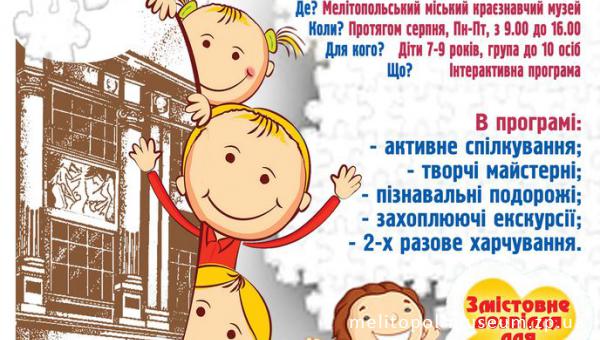 Мелітопольський міський краєзнавчий музей запрошує молодших школярів на інтерактивну освітньо-виховну програму «Музейні канікули»! Літо - це час пошуку вражень, нових пригод, експериментів і друзів! ⠀