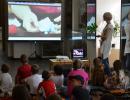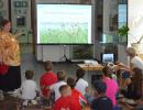 Сьогодні співробітники відділу природи провели дітлахів берегами Молочного лиману і малеча дізналась, що Молочний лиман є напівзакритою водоймою, яка відокремлена від Азовського моря косою. Єдиним виходом у море є штучна протока, яка дуже часто засмічується піском від штормів і потребує штучного очищення. Далі перед ними відкрився цікавий світ мешканців лиману - птахів, звірів, риб, адже Молочний лиман є місцем поселення багатьох видів водоплавних птахів, місцем нересту та нагулу цінних видів морських риб (перш за все, вселеного в Чорне та Азовське моря піленгаса), місцем зростання та проживання 14 рідкісних видів рослин та тварин, занесених до Червоної книги України.