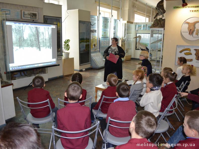 18 жовтня 2017 року об 11.30 в Мелітопольському міському краєзнавчому музеї пройшла тематична бесіда «Птахи, що зимують поряд з нами». До музею цього дня завітали учні 2-В класу 3-ої початкової школи м.Мелітополя.
